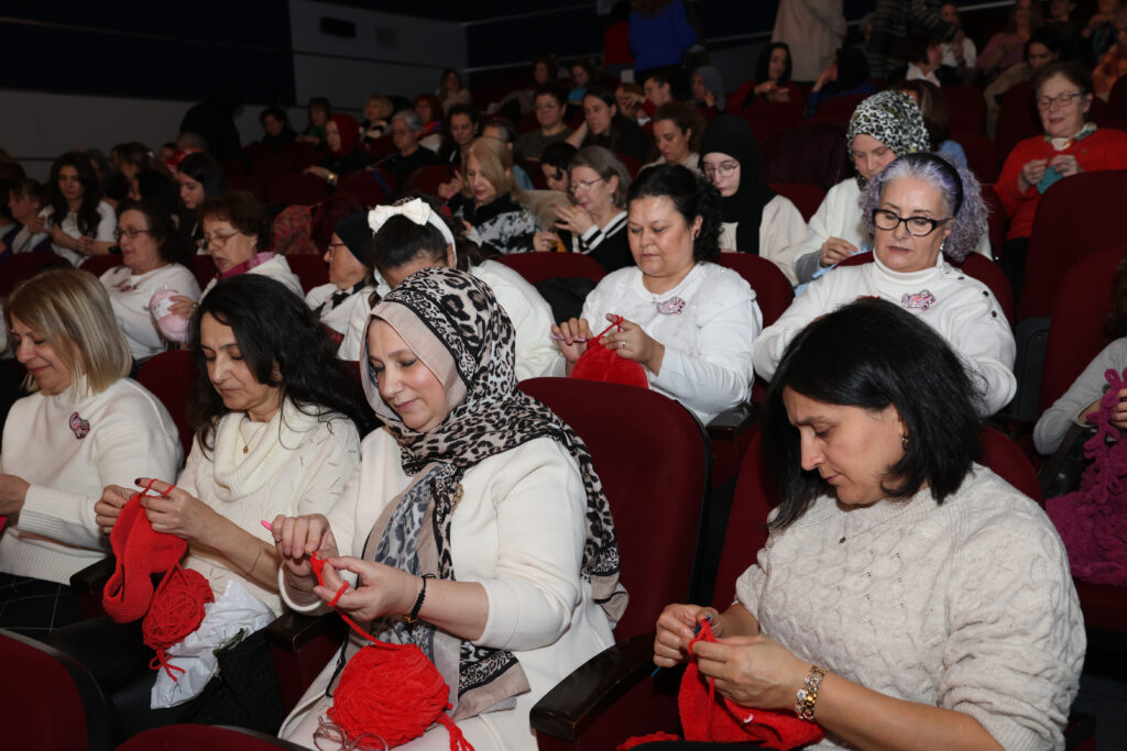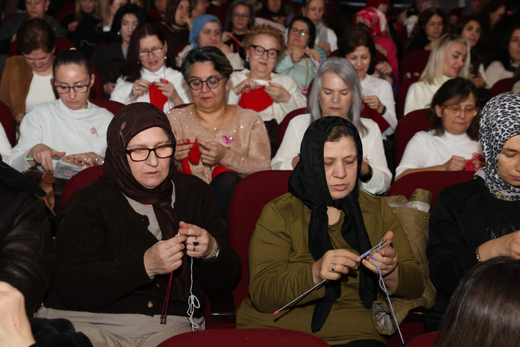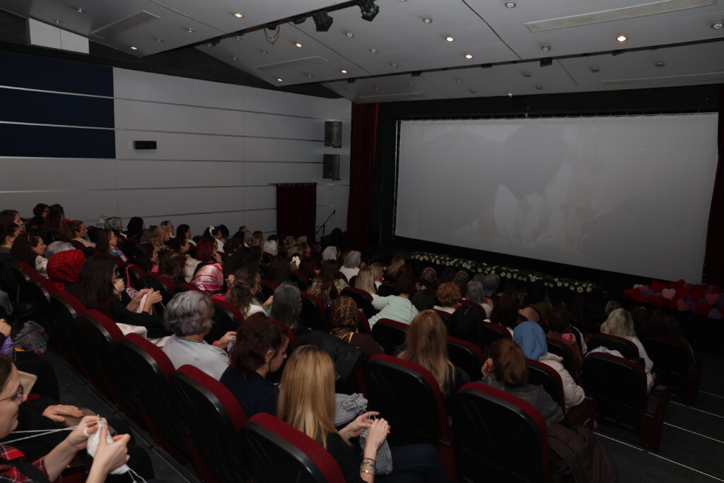 Etkinlikte katılımcılar, alışılmışın dışında bir sinema deneyimi yaşadı. “İyilik için ilmek atıyoruz” diyerek sinema koltuklarını dolduran yaklaşık 200 gönüllü kadın, sanatçı Adile Naşit’in hayatını konu alan “Adile” filmini izlerken bir yandan da Harmancık’taki ihtiyaç sahibi çocuklar ve dezavantajlı bireyler için atkı, bere ve kalpten yastıklar ördü. Film gösterimi sırasında gönüllülerin örgü örebilmesi için salon ışıkları açık bırakıldı.