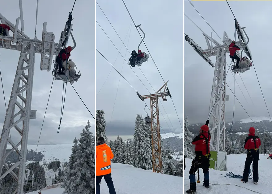 Uludağ’daki Birinci Oteller Bölgesi’nde hizmet veren bir telesiyejde meydana gelen teknik arıza, kısa süreli paniğe neden oldu. Havada mahsur kalan 51 tatilci, ekiplerin koordineli çalışmasıyla güvenl...
